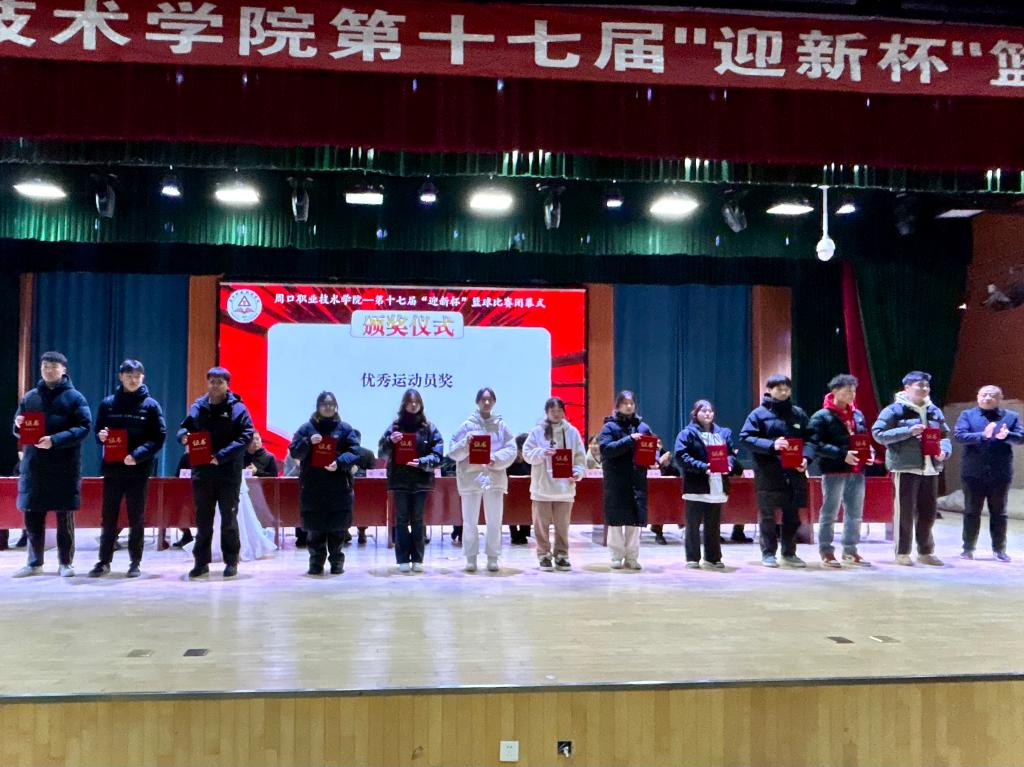 12月21日下午,ballBET贝博BB艾弗森在体育馆举行第十七届"迎新杯"篮球比赛闭幕式。贝博官网学管办主任郑玉凡及篮球队员参加闭幕式。贝博官网荣获本次比赛道德风尚奖,22级早期教育二班赵瑶、22级音乐表演一班赵乾提两位同学获优秀运动员奖。