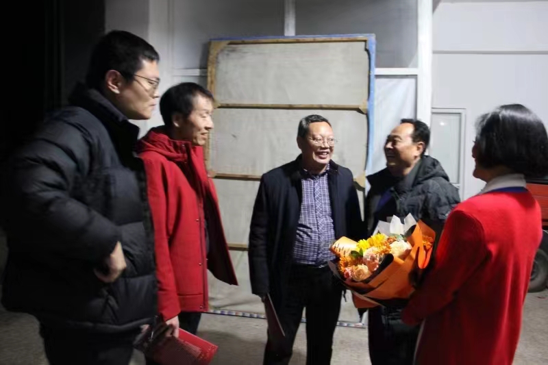 演出结束后,校党委副书记李明臣与豫剧《江姐》演员亲切交流。