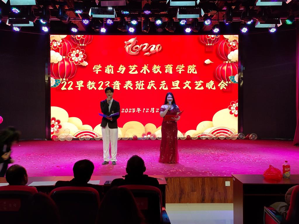 22、23级音乐表演专业及22级早期教育专业在学院艺术演播厅举行庆元旦文艺晚会,学院党总支书记王春生、院长高岐奎、教学办主任李晨阳、辅导员老师及本专业学生参加。