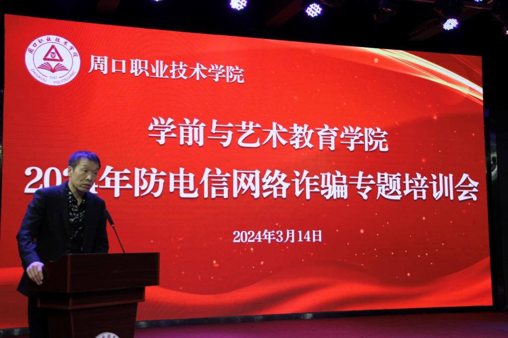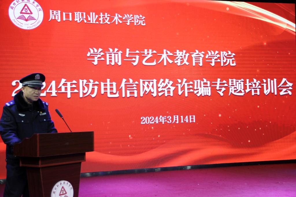 为进一步增强学院学生防范电信网络诈骗安全意识,保护学生财产安全,营造和谐稳定的校园环境,3月14日晚上,ballBET贝博BB艾弗森邀请周口市公安局经开分局太昊路派出所民警付建平、刘永辉来校,为学生进行防电信网络诈骗专题宣讲。ballBET贝博BB艾弗森党总支书记王春生出席培训会,学管办主任郑玉凡、教管办主任李晨阳、各班辅导员、团学骨干参加培训会,培训会由副院长杨晨主持。