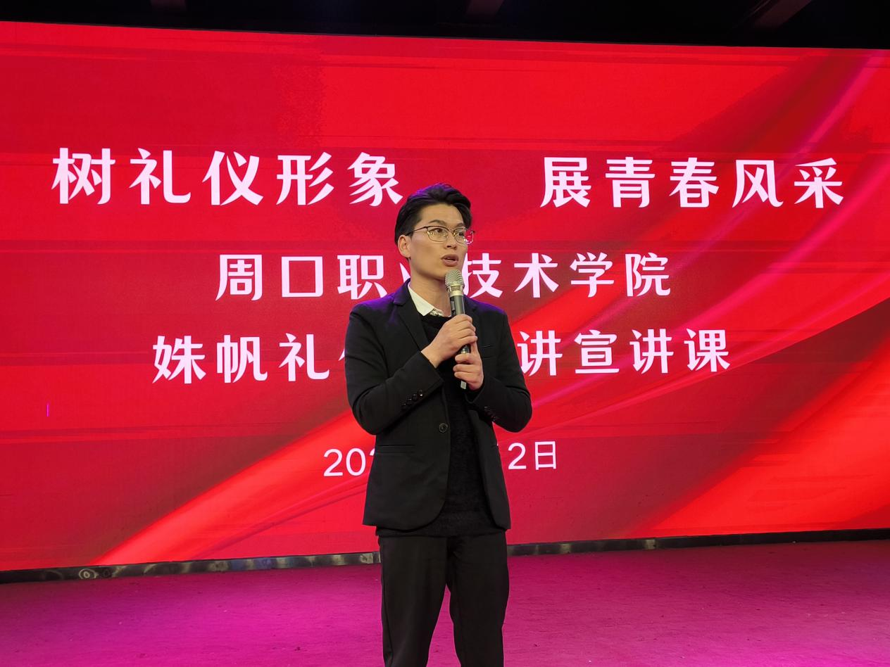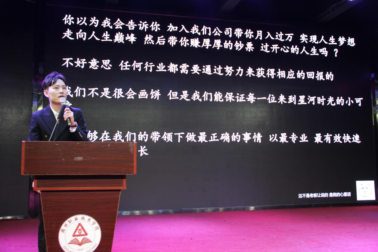 会上,河南姝帆文化传媒有限公司讲师董全福从企业文化、企业规模、岗位需求、发展前景、薪酬待遇等多个方面为同学们进行了详细的讲解,并解答了学生对实习期住宿、薪资等疑问,鼓励同学们要全方位发展,不断提升自身综合素质。