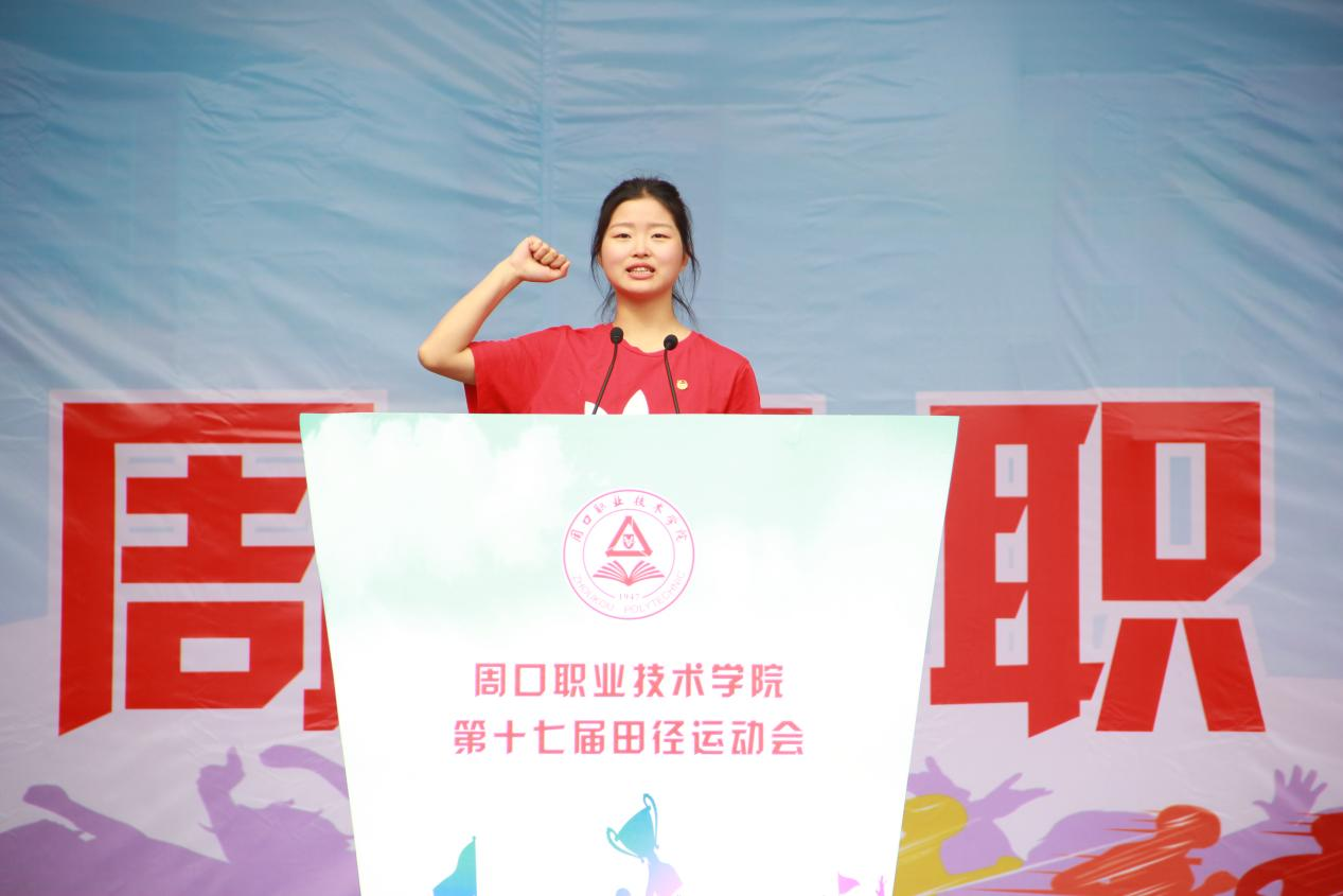 运动员代表ballBET贝博BB艾弗森2023级学前教育五班彭张敏进行宣誓:我们将以饱满的热情参加本届运动会,严格遵守赛事的各项安排,遵守比赛规则和赛场纪律,服从裁判,尊重对手,团结协作,公平竞争,顽强拼搏,赛出风格,赛出水平!