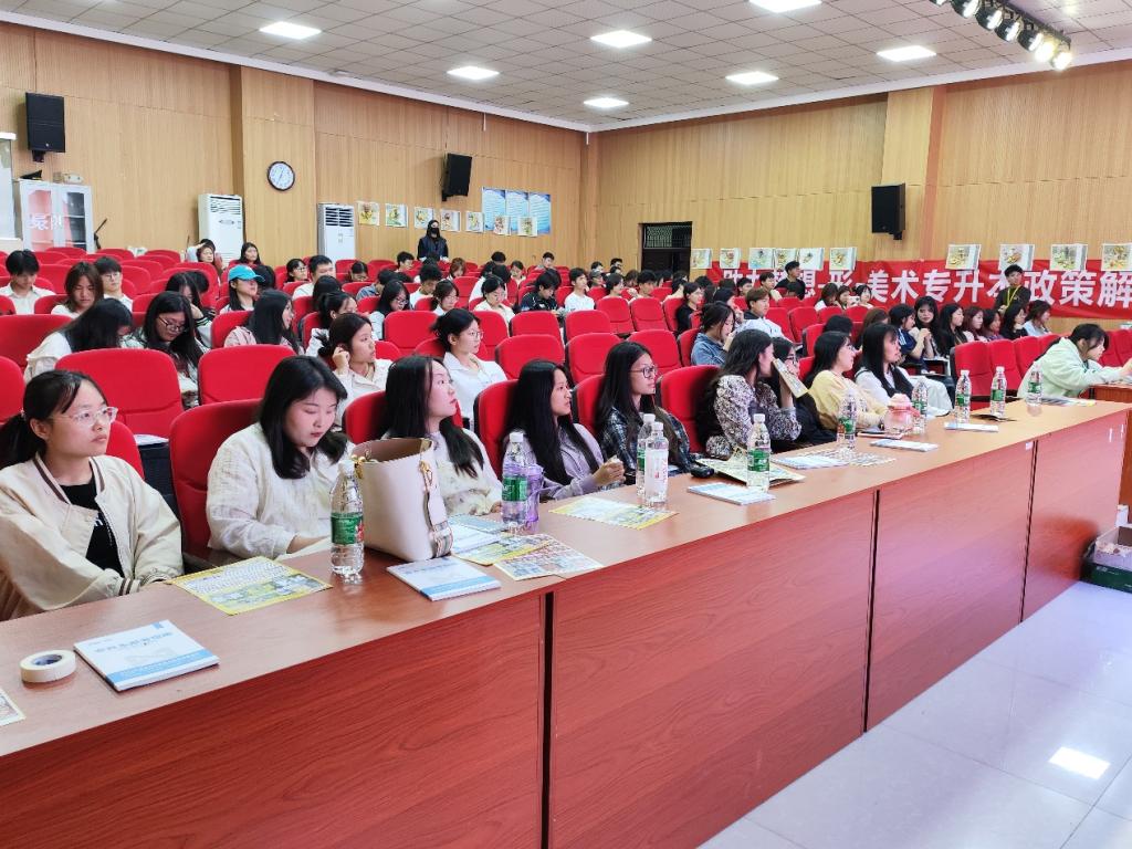为使学院学生全面深入了解专升本政策,做好未来学习规划,提升在校生专升本录取率,4月21日晚,ballBET贝博BB艾弗森邀请形一美术在艺术演播厅举办专升本主题教育讲座,22、23级视觉传达设计专业、服装设计专业学生到场聆听。