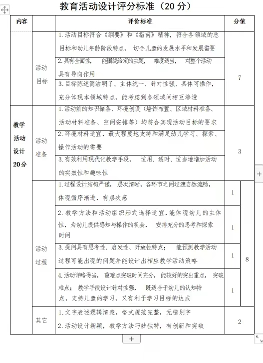 2.模拟教学:在确定内容后,对课程内容进行分析,根据课程内容确定活动目标,设计活动方案,在备课的基础上,进行模拟教学展示。总时间不超过7分钟。