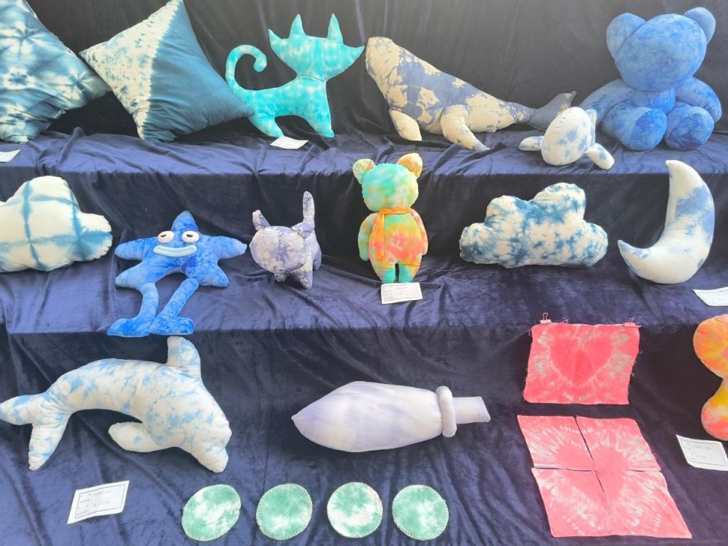扎染,作为我国璀璨的民间艺术瑰宝,历史悠久,其工艺涵盖扎结与染色两大精髓。同学们巧妙运用纱、线、绳等多样工具,以扎、缝、缚、缀、夹等技法,将个人创意融入织物之中,经染色,再制作。最终呈现出一幅幅色彩斑斓、形态各异的扎染佳作!