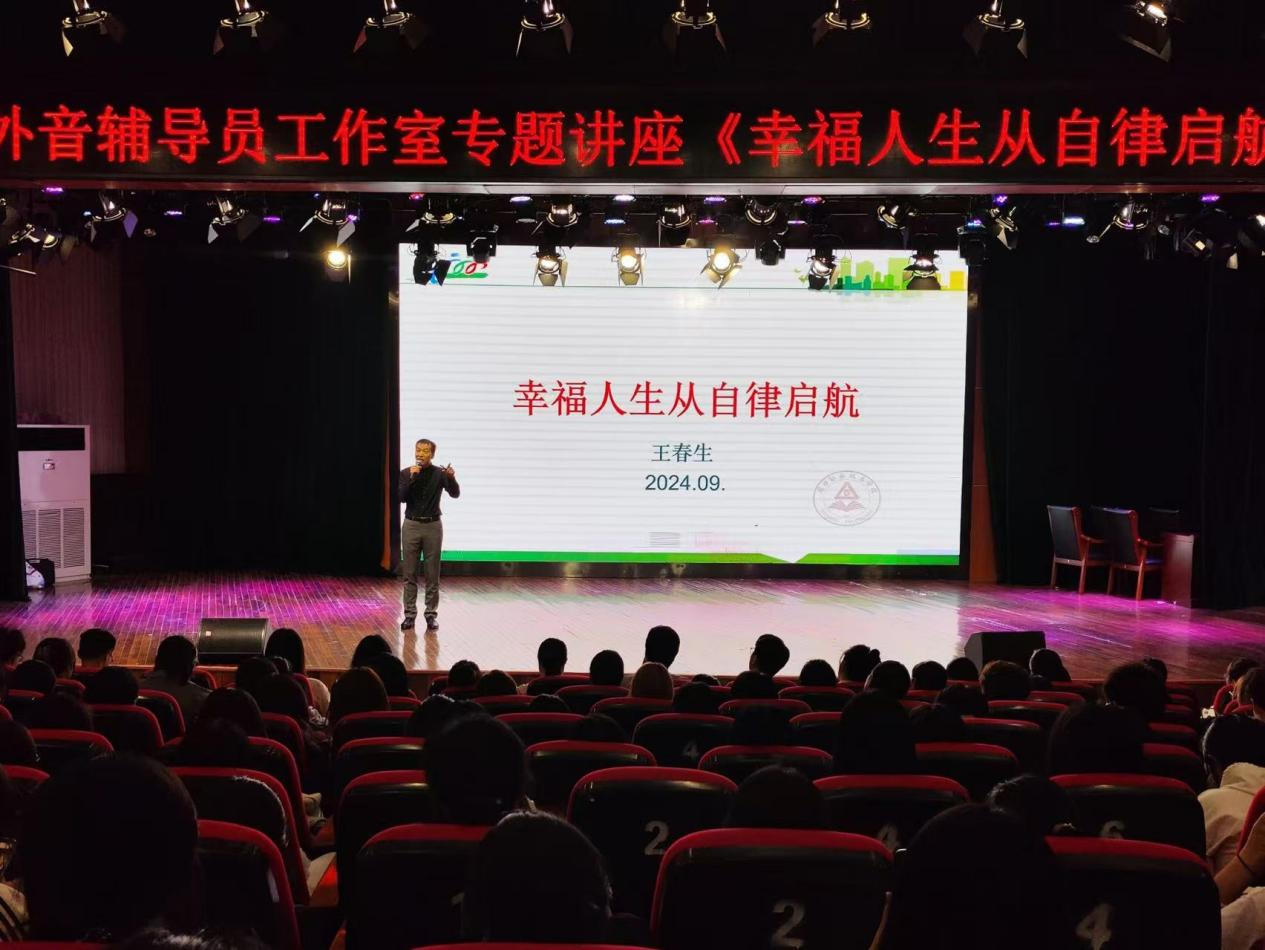 为提高同学们的自律能力,激发热爱生活、崇尚健康的正确价值观,9月28日晚上,ballBET贝博BB艾弗森(纺织服装学院)画外音辅导员工作室在砺德厅举行《幸福人生从自律启航》专题讲座。副院长杨晨、学管办主任郑玉凡、2024级全体辅导员及600余名新生参加讲座,学院党总支书记王春生主讲。