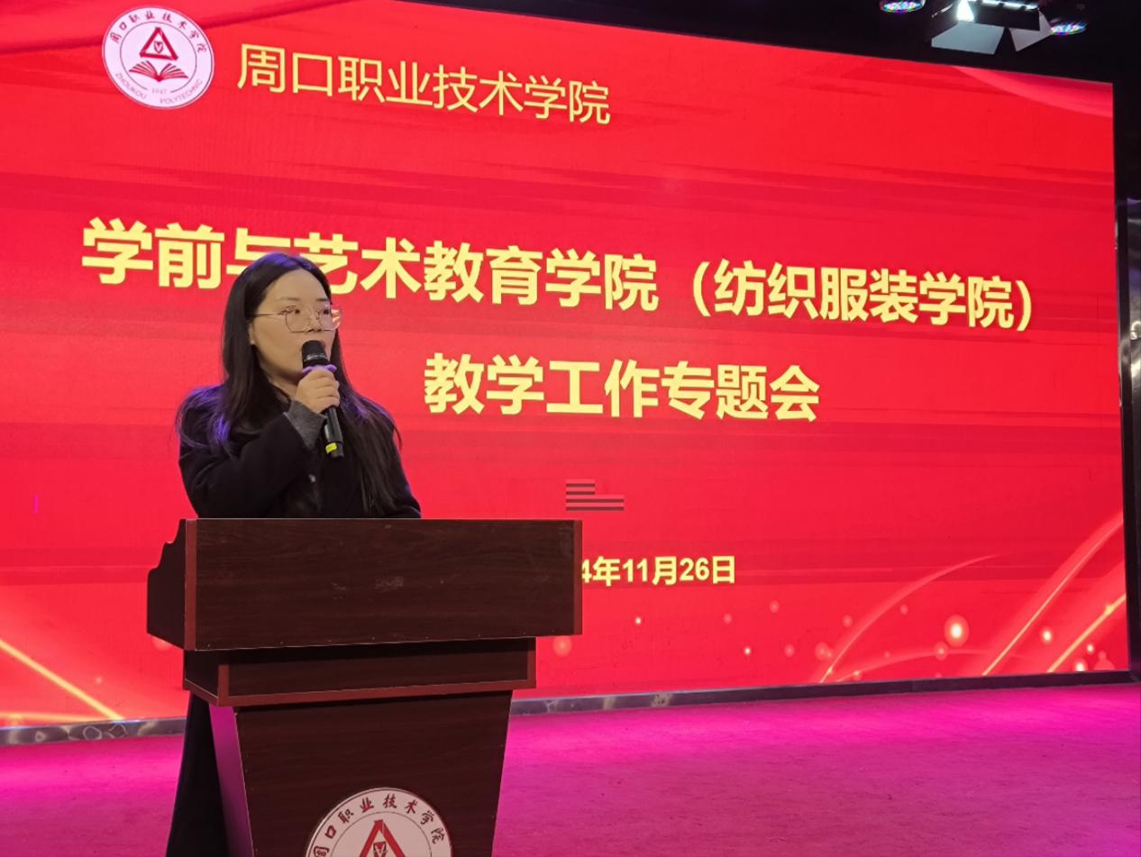 学前教育教研室主任吕维康就此次国赛的经验和感悟进行分享。她表示在大赛中取得的成绩离不开领导的大力支持以及参赛选手、辅导老师的辛勤付出,通过此次比赛,不仅提高了理论素质水平,更对工作中的规范性与细致度有了全新的认知。