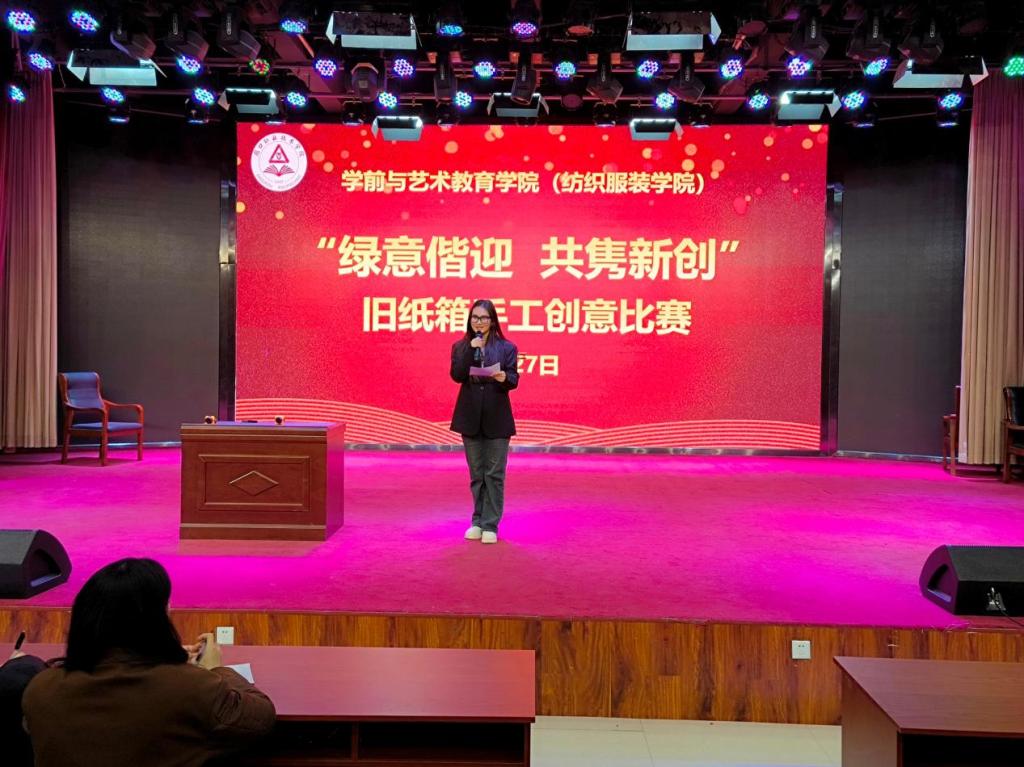 为丰富校园文化生活,提升学生的专业技能和创新能力,提高环保意识和综合素养。11月27日晚,ballBET贝博BB艾弗森(纺织服装学院)在艺术演播厅开展“绿意偕迎,共隽新创”旧纸箱手工创意比赛。学院团总支书记刘馨馨、辅导员李晓悦及学生代表担任评委。