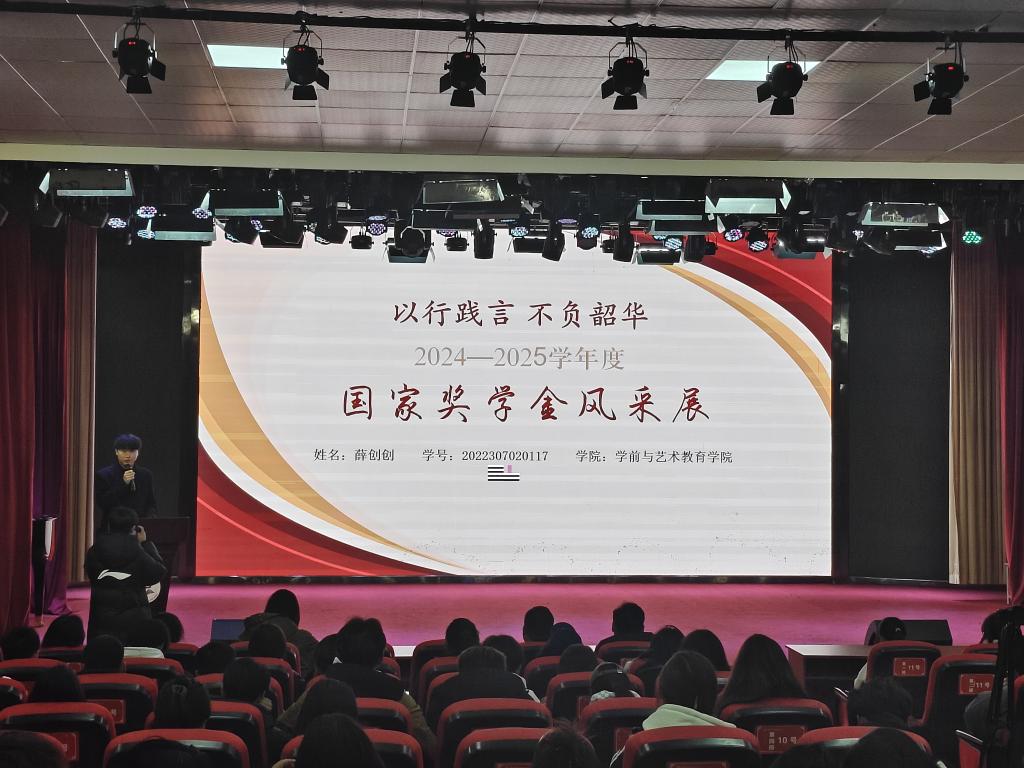 贝博官网2022级音乐表演01班的薛创创同学作为国家奖学金获得者和学生代表,在风采展中进行了主题分享。他围绕学科竞赛、学习经验和成长经历展开,结合个人实际,生动讲述了如何科学规划学习、克服挑战的心得体会,以及未来的目标愿景。