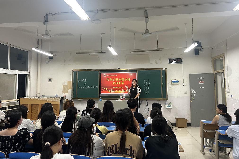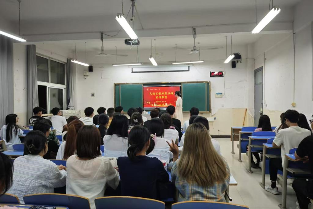 为进一步加强民族团结和宗教和谐,提升师生对中华民族宗教政策法规的认识,2024年9月10日晚自习时间,ballBET贝博BB艾弗森各班辅导员进班宣讲,集中开展了以“民族宗教政策法规宣传教育”为主题的宣传教育班会。