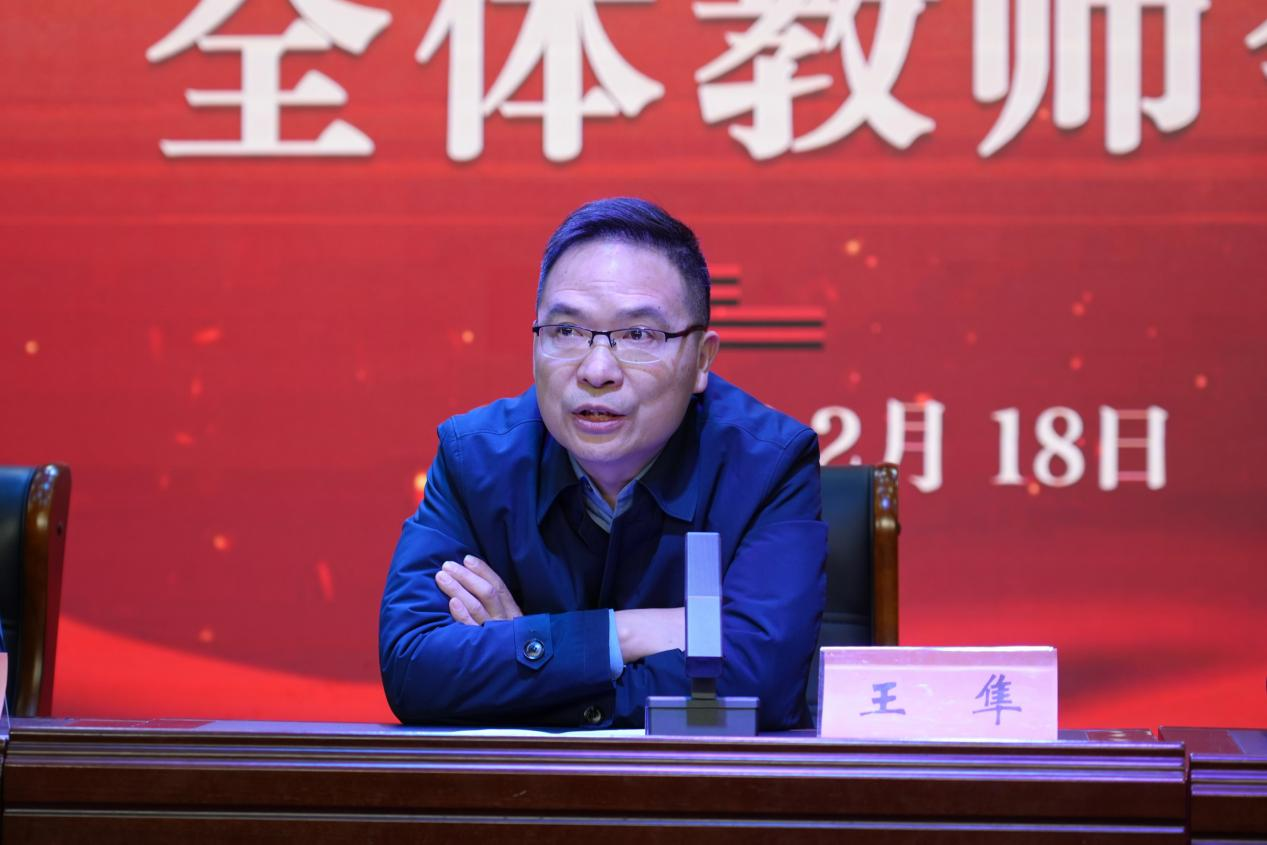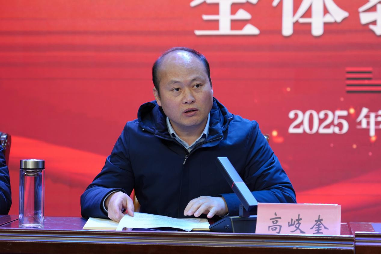 高岐奎总结了过去一年学院教师取得的成绩,并强调师生要积极参与技能大赛,扎实推进学生专升本工作,鼓励学生积极参与就业创业活动。同时,他强调学院要不断加强师资队伍建设,提升科研水平,为学生提供更优质的教育资源。