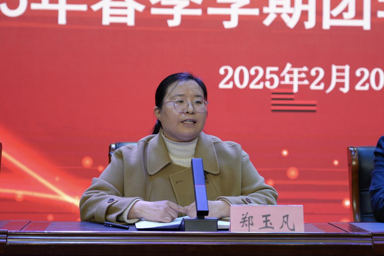 随后,学管办主任郑玉凡代表学生管理办公室,向在座的各位团学骨干在过去一年中的辛勤付出表示诚挚的感谢。并对新学期同学们的学习态度、学习习惯、遵守规章制度情况、校园安全、心理健康等方面提出了全面细致的要求。