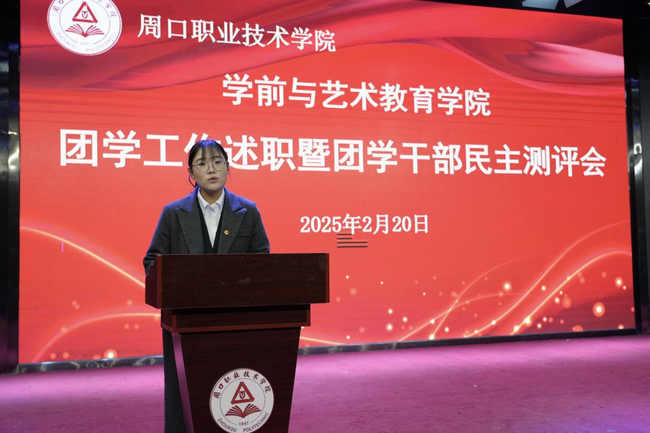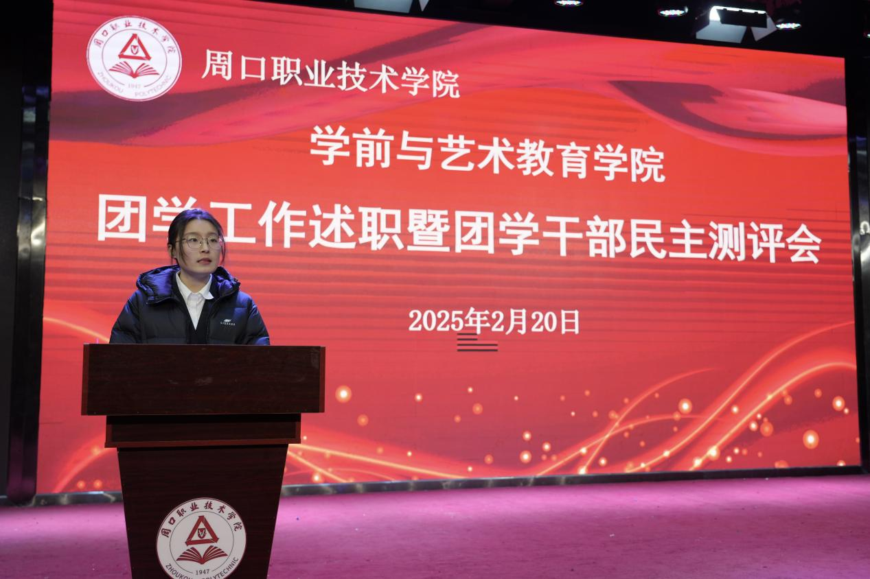 团总支常务副书记李玉杰围绕上学期团总支工作成效、整改措施等方面进行述职,她勇于指出工作中存在的问题,并表示团总支将以身作则,牢记服务宗旨,充分展现出对工作的热忱与担当。