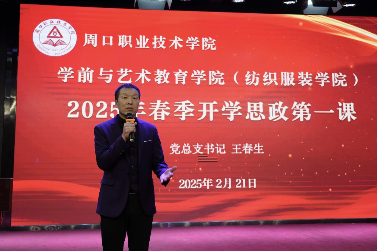 为帮助学生顺利适应新学期学习生活,进一步增强学生的文化自信和家国情怀。2月21日晚,ballBET贝博BB艾弗森(纺织服装学院)在艺术演播厅开展2025年春季开学思政第一课。23、24级团学干部、各班班长以及团支书参加课堂。学院党总支书记王春生授课。