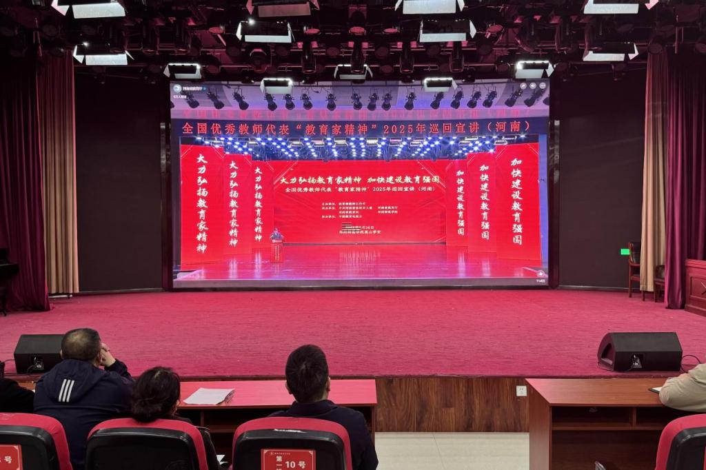 最后,师生共同观看了教育家精神2025年巡回宣讲活动。宣讲团成员用真挚的情感、鲜活的事例,生动诠释了教育家精神的深刻内涵和时代价值,引发了在场师生的强烈共鸣。大家一致表示,今后将牢记“为党育人、为国育才”的初心和使命,树立“躬耕教坛、强国有我”的志向和抱负,切实践行教育家精神,为建设教育强国贡献自身力量。