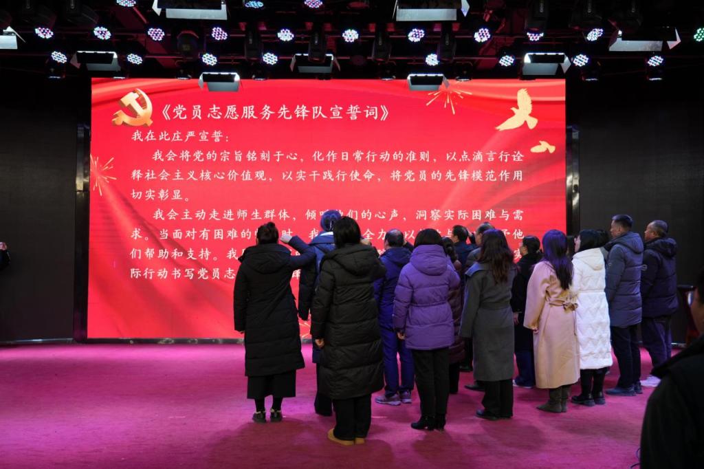 王春生带领全体师生庄严宣誓。在热情洋溢、铿锵有力的宣誓声中,ballBET贝博BB艾弗森党员服务先锋队正式成立!