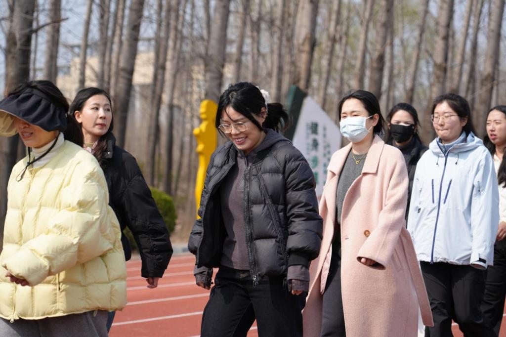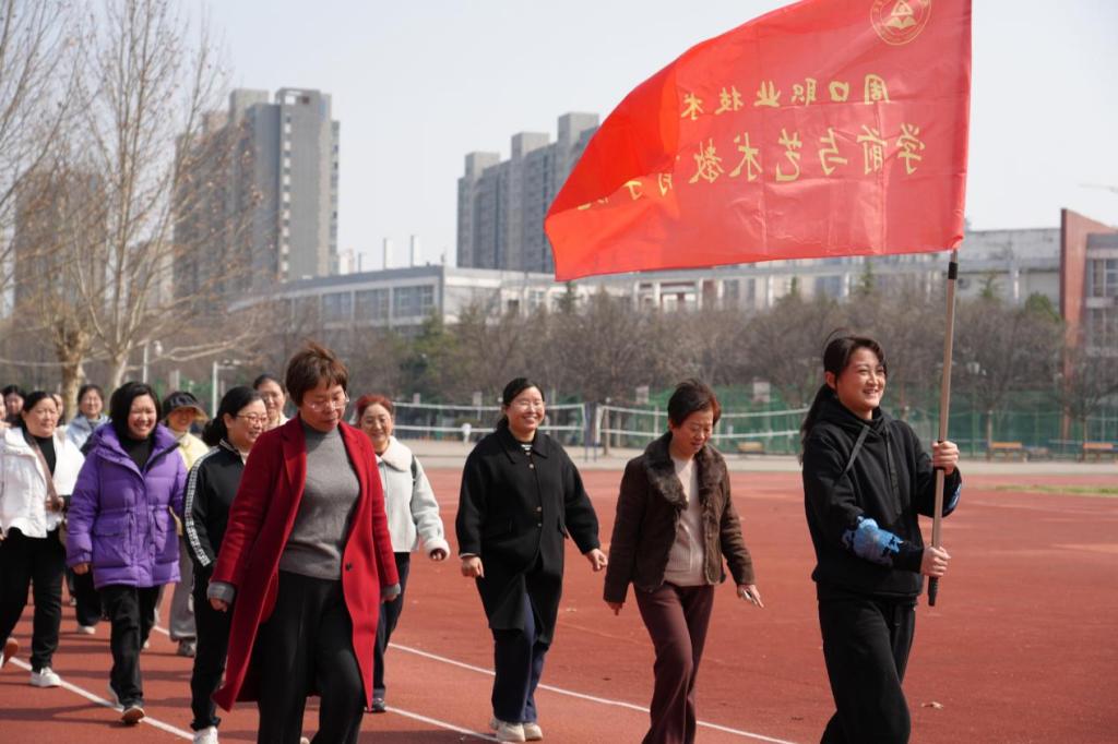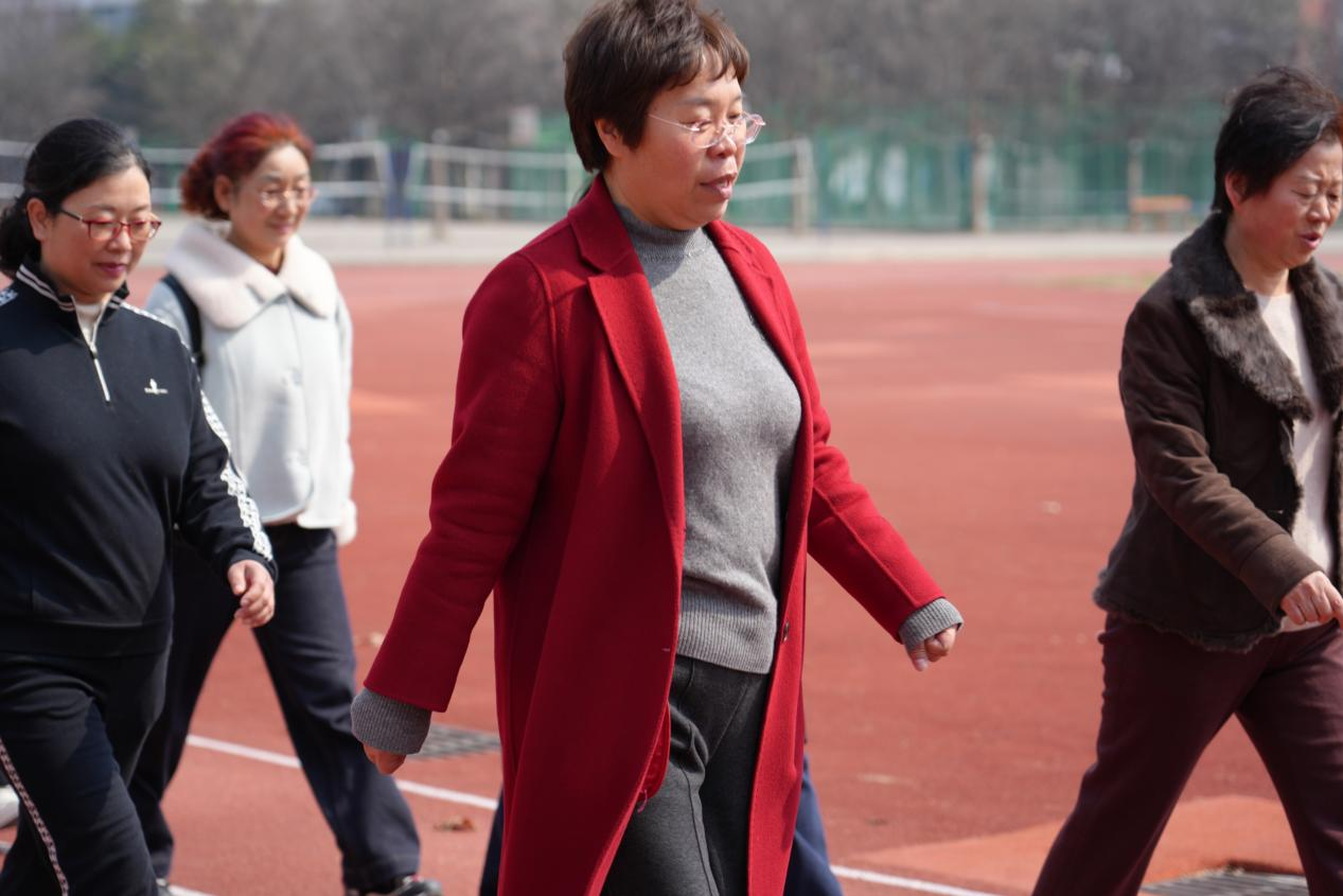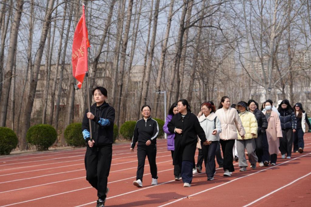 活动现场,大家沿着操场跑道有序前行,教职工们脸上洋溢笑容,一路上欢声笑语,踏着矫健有力的步伐,在行走中放松身心,感受春天气息,欣赏着校园里的春日美景。
