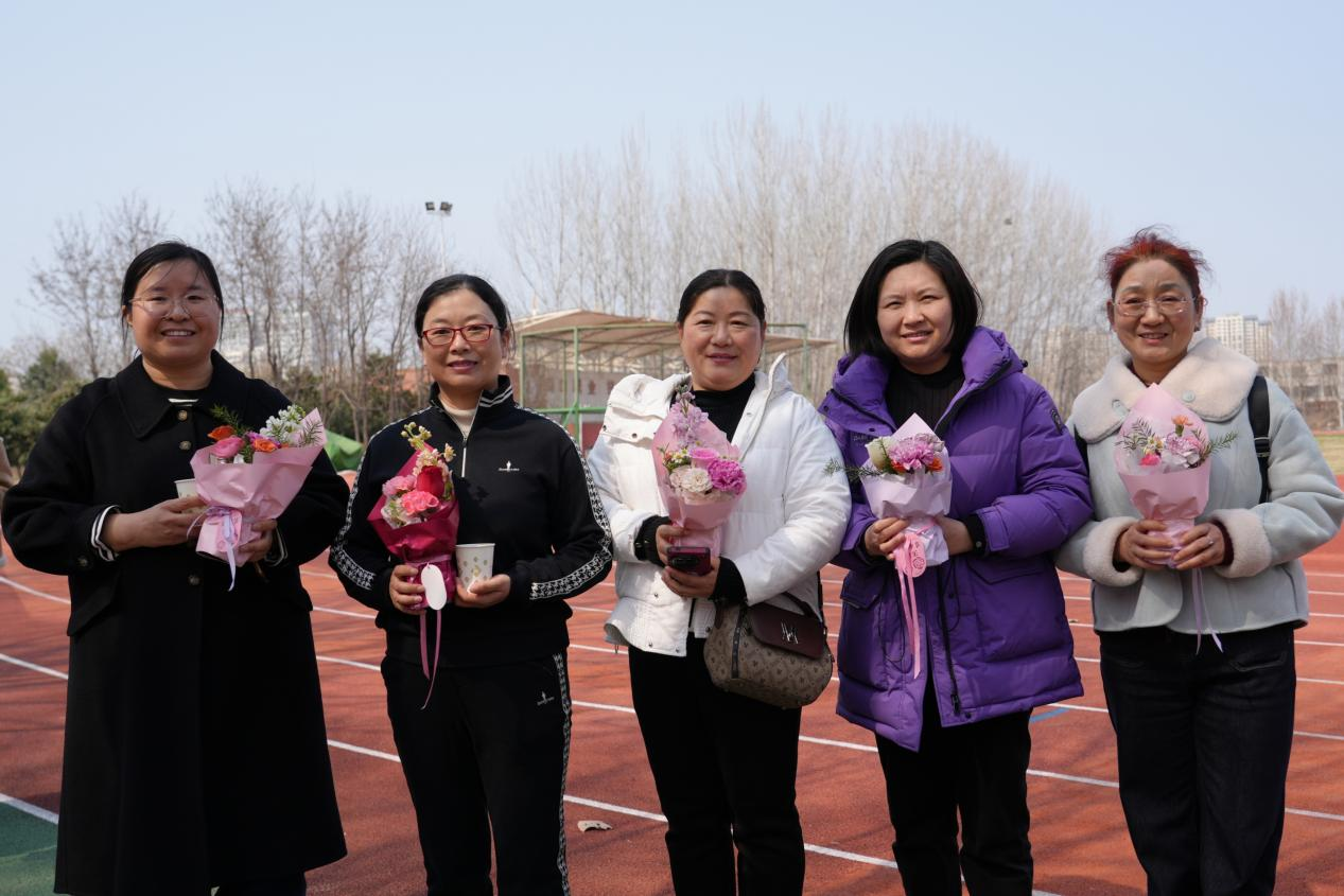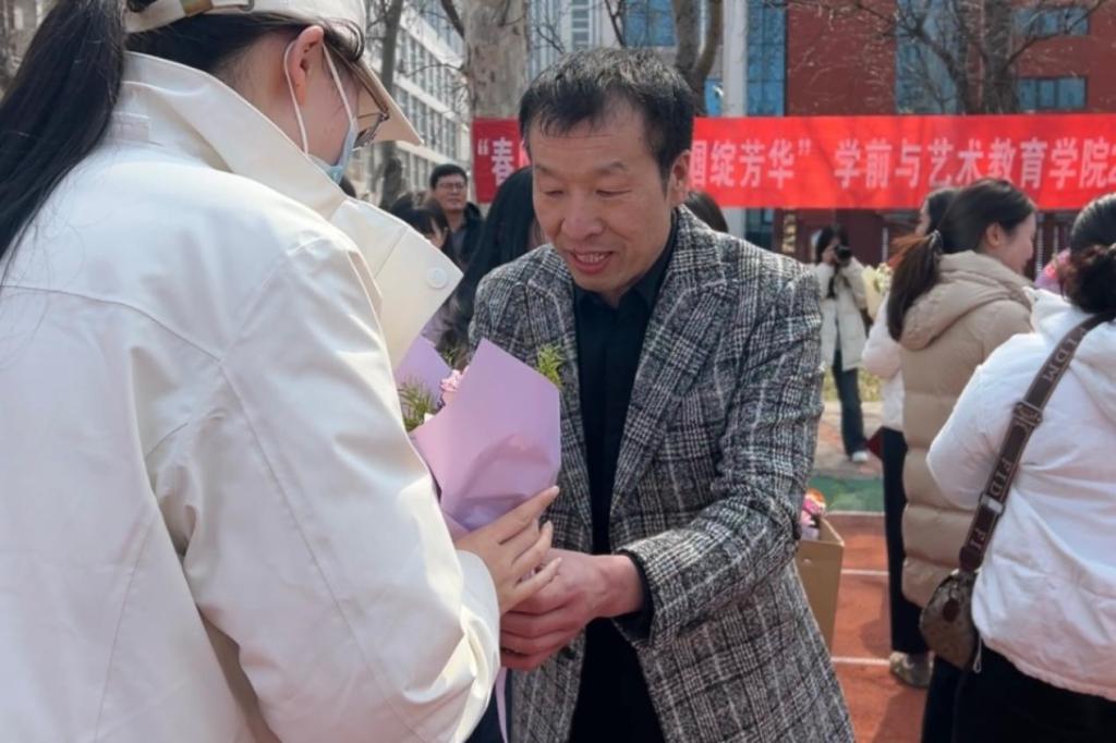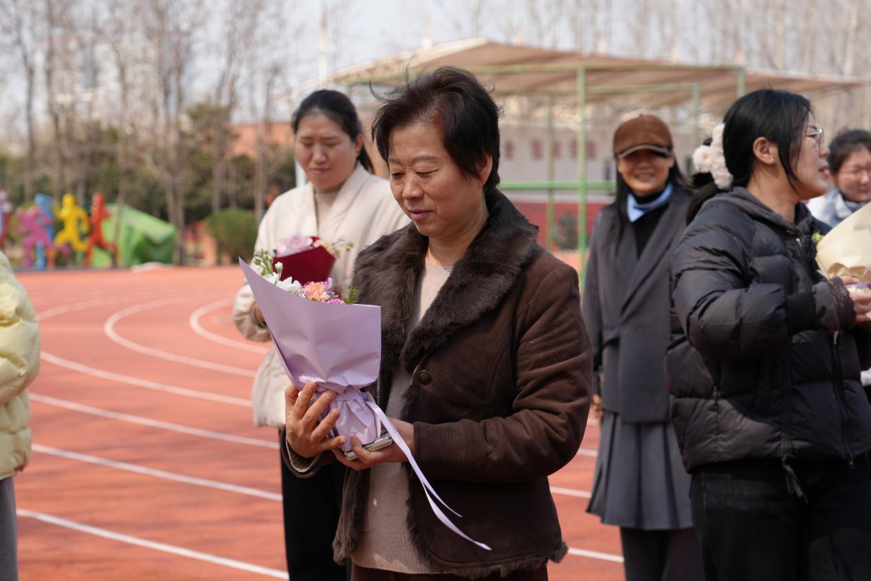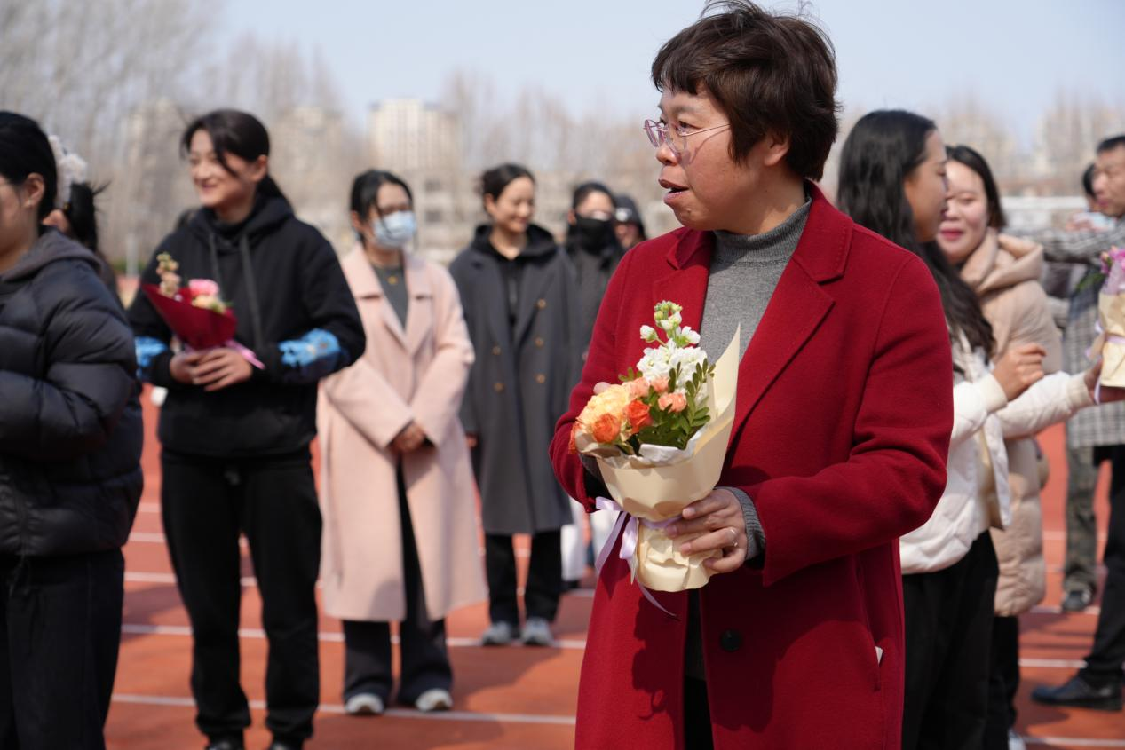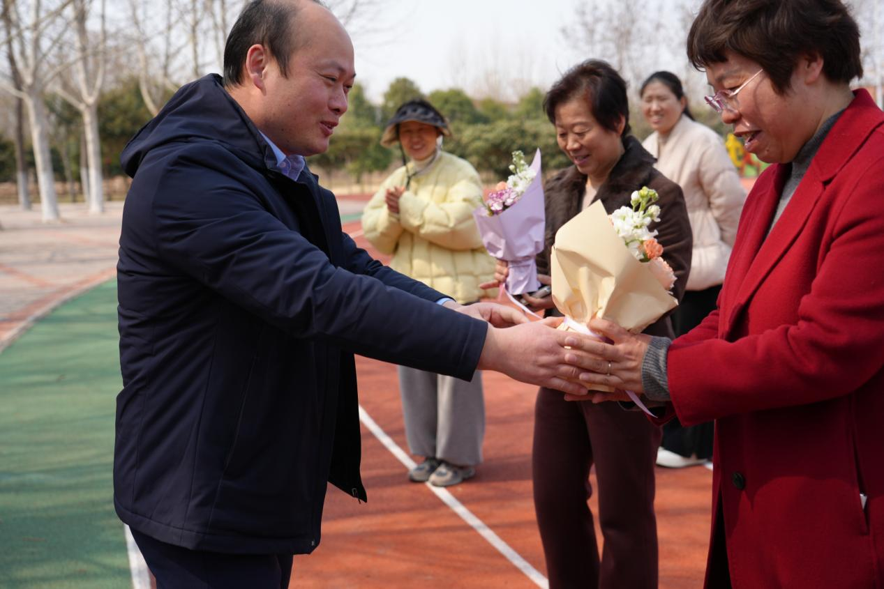 党总支书记王春生、院长高岐奎为女教职工献花。