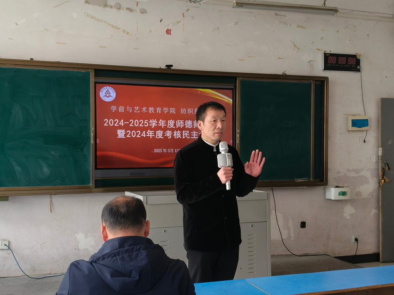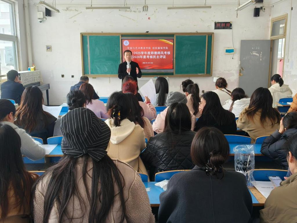 为深入贯彻学校年度考核工作要求,加强师德师风建设,提升教育教学质量。3月13日下午,ballBET贝博BB艾弗森(纺织服装学院)在一楼4133教室召开2024—2025学年度师德师风考核暨2024年度考核民主评议工作会,学院班子成员及全体教师参加会议。会议由学院党总支书记王春生主持。