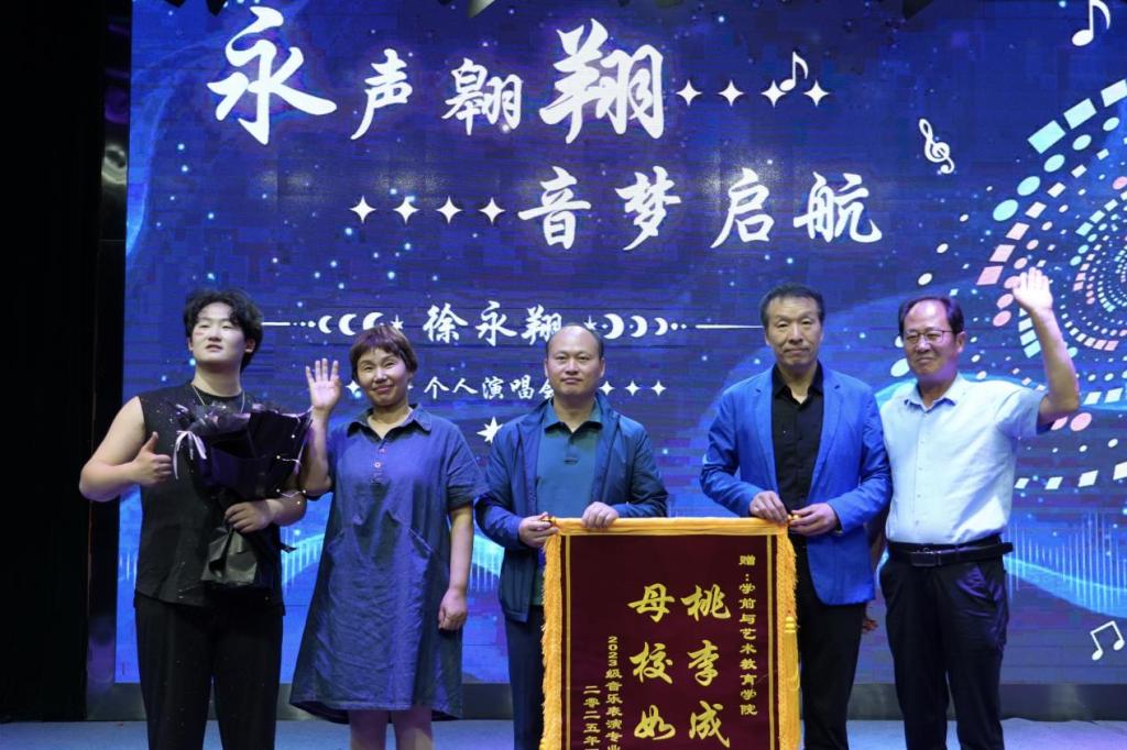 随着最后一首歌曲《那些我尚未知道的美丽》的尾音缓缓落下,徐永翔与父母一同向学院送上诚挚的礼物——印有“桃李成乐,母校如歌”的锦旗,以此表达对学院领导和老师们辛勤培育与无私奉献的感激之情。