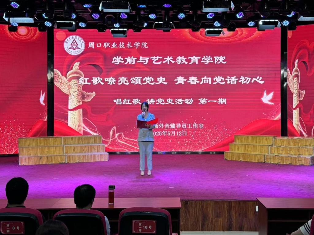 5月12日晚,由贝博官网“画外音”辅导员工作室承办的第一期唱红歌、讲党史活动在艺术演播厅举行,学院党总支书记王春生、副院长杨晨、学管办主任郑玉凡、23、24级辅导员代表及各班班长、入党积极分子参加活动。