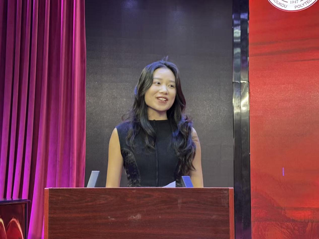 新进教师代表郭思彤发言,她表示在今后的工作中将虚心学习经验,快速成长以适应教学岗位,要以饱满的热情与严谨的态度投身教育事业,为学生和学院的发展贡献力量。