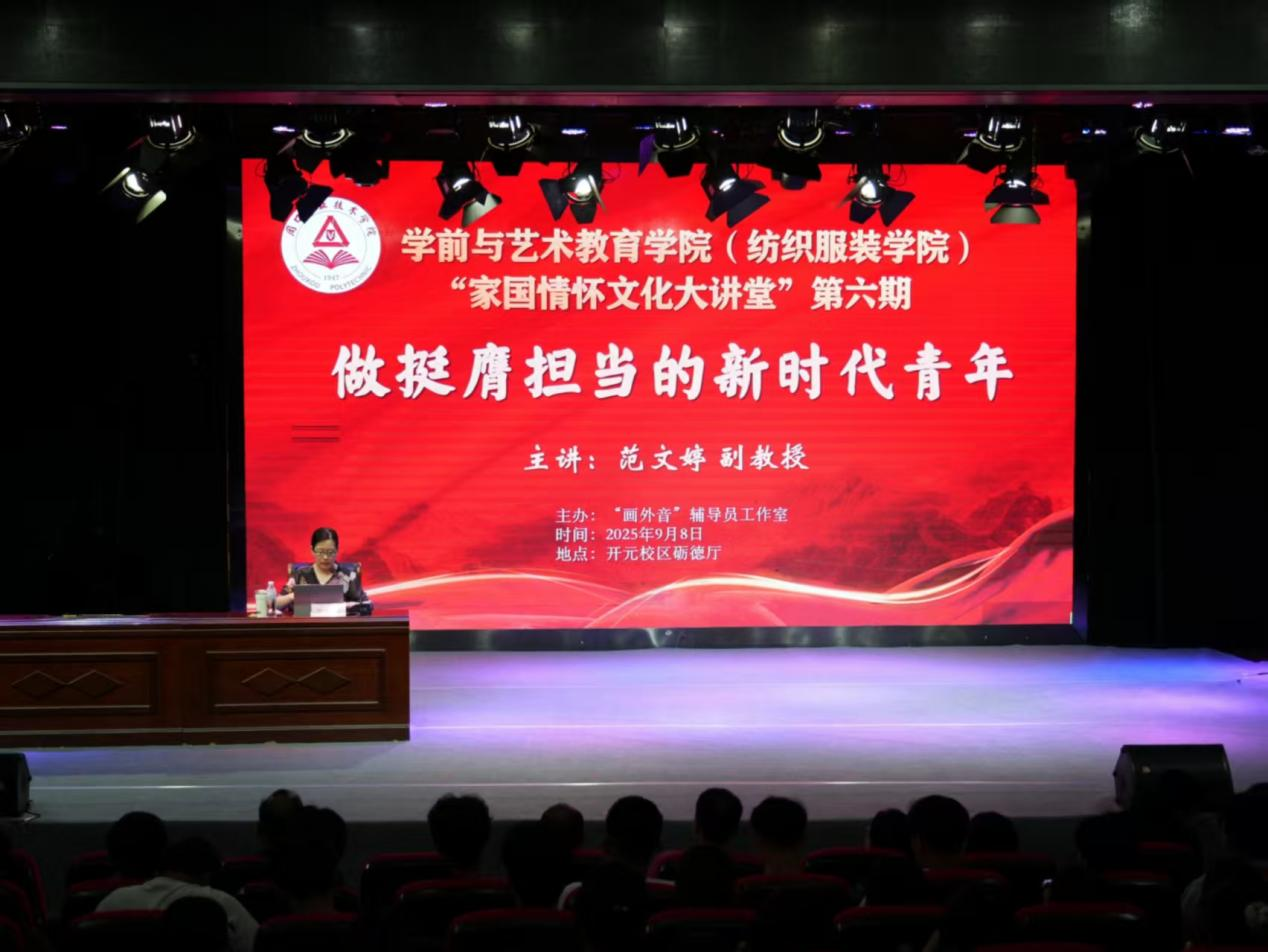 9月8日,由ballBET贝博BB艾弗森(纺织服装学院)“画外音”辅导员工作室主办的“家国情怀文化大讲堂”第六期在砺德厅激情开讲。本期特邀ballBET贝博BB艾弗森马克思主义学院副院长范文婷为主讲人,学院师生600余人现场聆听讲座。