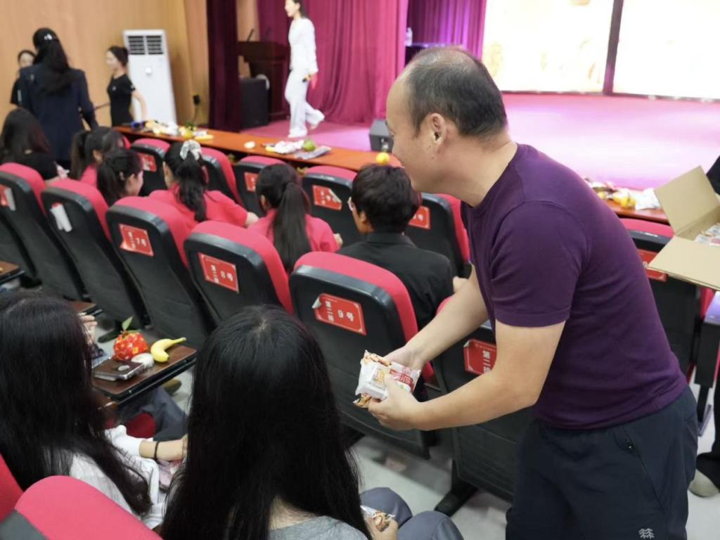 活动尾声,最温暖的“团圆时刻”如期而至——学院领导与老师们为现场的同学们分发了象征团圆的月饼。小小的月饼包裹着浓浓的关怀,当学子们拿着月饼,脸上洋溢着幸福的笑容,这份“校园团圆礼”让双节的温暖直抵人心。