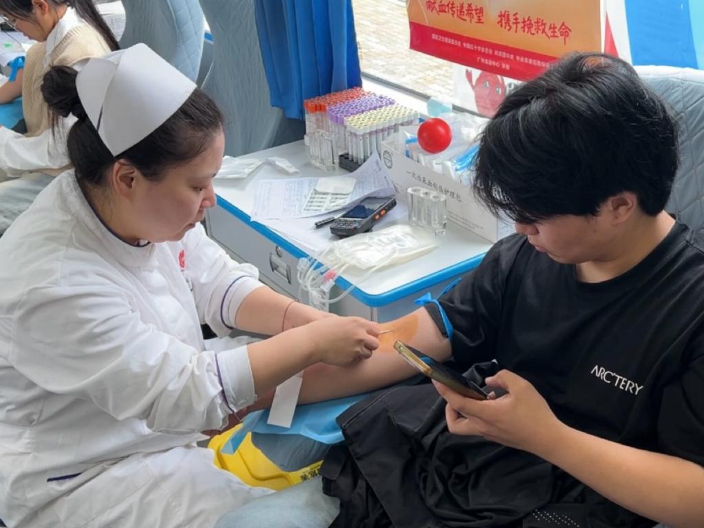 志愿者们撸起衣袖、伸出臂膀,配合医护人员完成专业采血。他们始终坚定从容,即便有过片刻紧张,也会咬牙坚持,用热血诠释着青年的无畏担当。