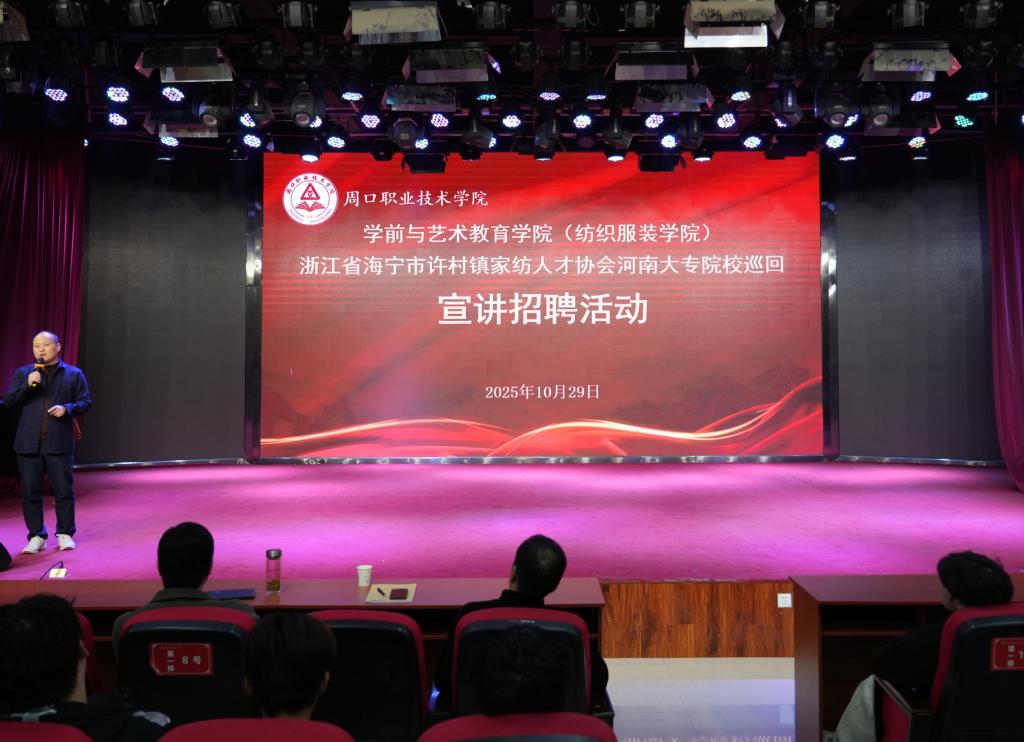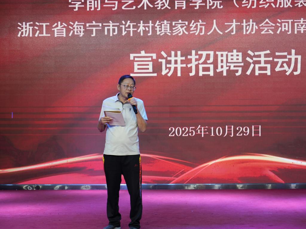 为精准对接高校人才培养与企业用人需求,助力学生高质量就业,10月29日下午,贝博官网在艺术演播厅开展纺织服装专业企业宣讲会,浙江省海宁市许村镇家纺人才协会秘书长朱小平亲临现场进行宣讲。学院党总支书记王春生、副院长杨晨以及24、25级纺织服装专业学生共同参加活动。活动由院长高岐奎主持。