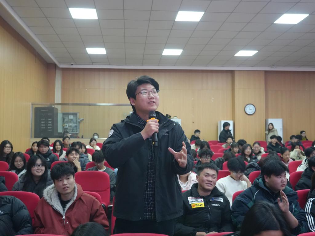 朱永亮老师以“诵读中的声音控制与情感表达”为主题开展专题分享,他结合巴金《我的心》等经典篇目进行现场示范教学,逐句拆解诵读中语调起伏、停顿节奏的把控技巧,细致讲解声音力度调节与情感传递的适配方法;并邀请在场学子进行实践展示,针对性指正发音规范、情感表达精准度等问题。