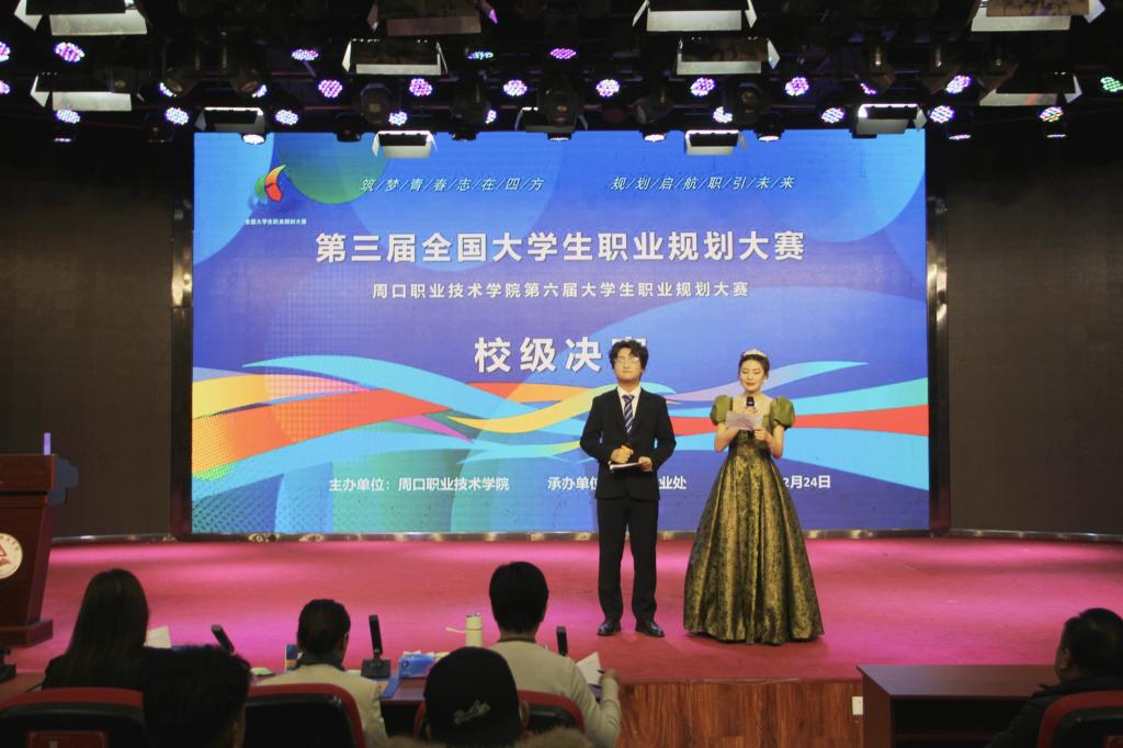 12月24日,由ballBET贝博BB艾弗森主办,招生就业处承办的第六届大学生职业规划大赛决赛在贝博官网艺术演播厅举行。副校长王隼、招生就业处处长许建国、各院部院长、主任出席活动。15位总决赛参赛选手、指导老师及各院部学生代表参加活动。特邀省内专家担任评委。邀请周口市中心医院、周口戏曲艺术研究院、周口莲花路幼儿园等九家单位代表组成“企业心选团”助力决赛。