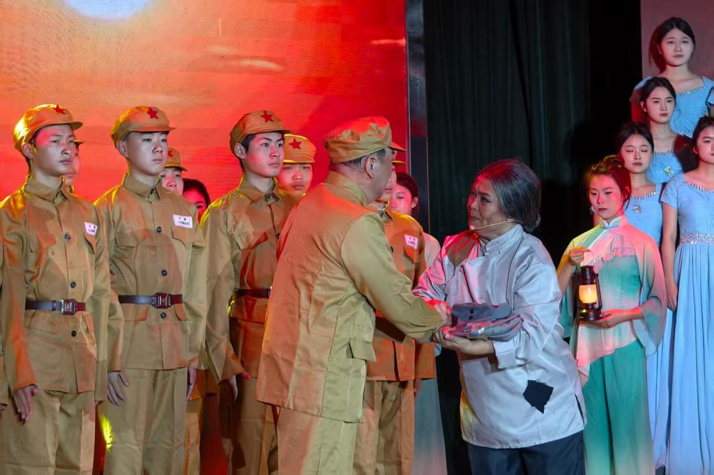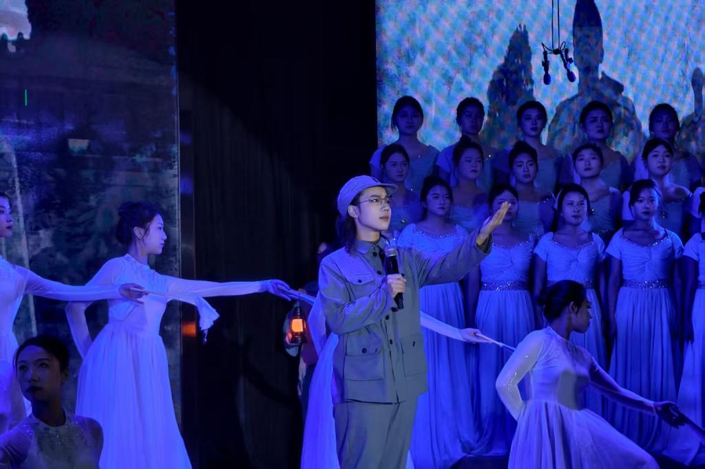 《黄河忠魂祭》以左权将军的英雄事迹为主线,生动再现了抗战时期军民同心、保家卫国的历史图景,深刻彰显崇高的民族气节与炽热的爱国精神。本次展演是师生精心打造的舞台力作,参演人员以高度的责任感投入创作,从史料研读、剧本打磨到舞台调度、情感刻画,各个环节均凝聚着集体的智慧与汗水。真挚的情感表达与精湛的舞台演绎深深感染现场观众,台下掌声经久不息。