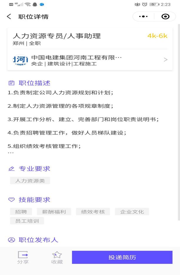 6、在“职位详情”页面,点击“留言”按钮,可与招聘者在线沟通。