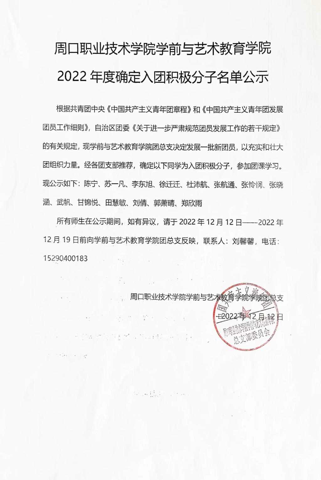 周口职业技术ballBET贝博BB艾弗森2022年团员发展对象公示