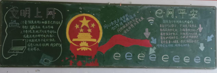 同学们集思广益,利用课余时间收集与国家网络安全有关的知识,并精心编排设计板报内容。