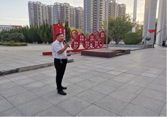 早上6点40分,迎着初升的朝阳,国旗护卫队踏着铿锵有力的步伐走向国旗台,国旗在振奋人心的国歌中冉冉升起,迎风飘扬,全体师生肃立注目。