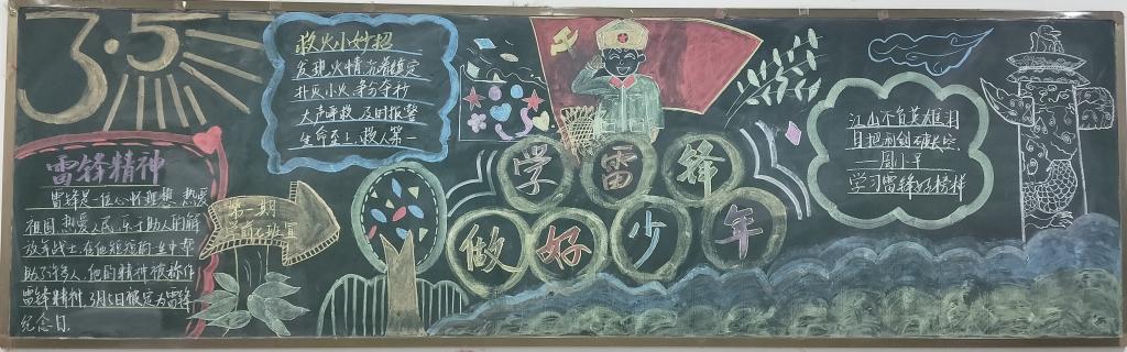 同学们精心设计,把对雷锋的崇敬和怀念之情,都融入到了一块块美观大方、主题突出、创意新颖的黑板报里。