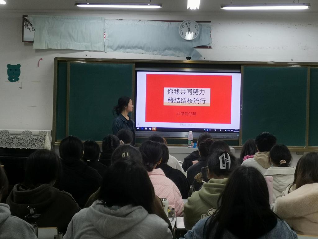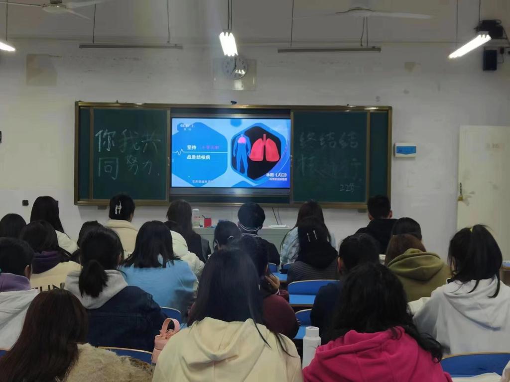 2023年3月24日是第28个世界防治结核病日。为做好预防结核病的宣传活动,提高学生的自我防范意识,科学有效预防结核病的发生,3月24日,ballBET贝博BB艾弗森开展“你我共同努力,终结结核流行”预防结核病主题班会宣传教育系列活动。21、22级全体学生参加此次活动。