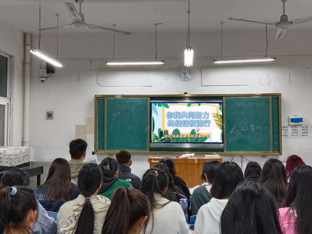 班会上,各班辅导员及团支书利用多媒体课件,以图文资料的形式对结核病的症状、潜伏期、传播途径、如何预防等进行了详细讲解,提醒学生要做好预防工作,在教室和寝室等室内场所多开窗通风,保持健康的心态,加强身体锻炼,养成良好的生活规律和卫生习惯,从根源上防范结核病的侵扰。
