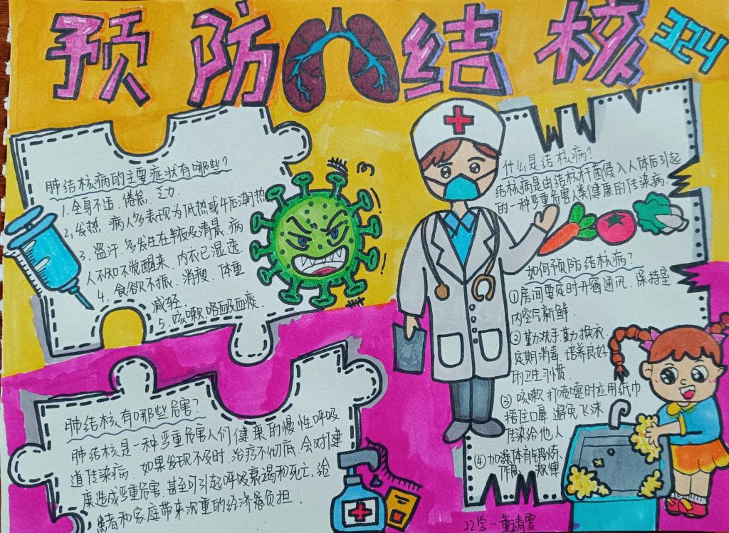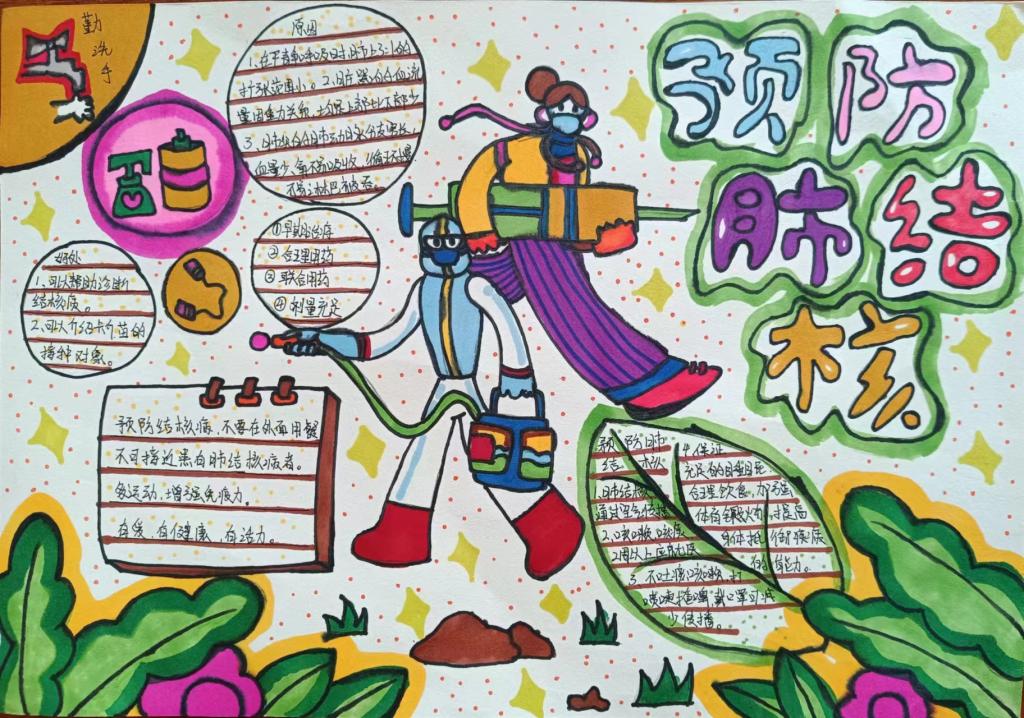 活动期间,学生们积极参与,搜集防治结核病相关知识,创作出一份份图文并茂,内容充实的手抄报作品。