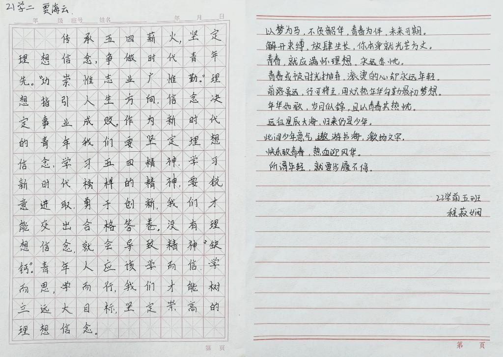 同学们以翰墨言志,用笔书写五四精神,用墨展现青春梦想,每一幅作品都凝聚着同学们对五四精神的感悟,诠释着对五四精神的赤诚。
