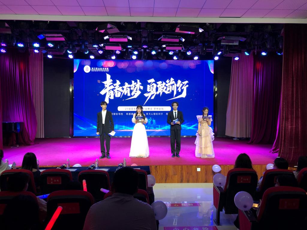 5月25日晚7时,2021级音乐表演一班“青春有梦,勇敢前行”毕业晚会汇演在艺术演播厅隆重举行。ballBET贝博BB艾弗森领导、教师代表和学生一同观看了汇演。