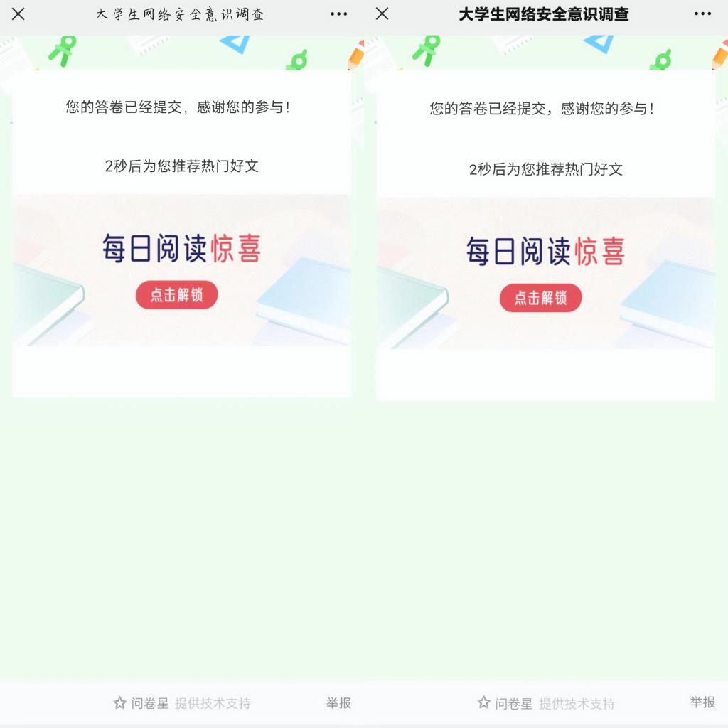 活动中,同学们积极配合,通过扫描调查问卷的二维码进入问卷小程序,认真作答。问卷题目设置灵活多样,内容丰富,同学们在填写过程中,认识到了自己网络安全防范意识存在不足,敲响了心中防范网络安全的警钟。