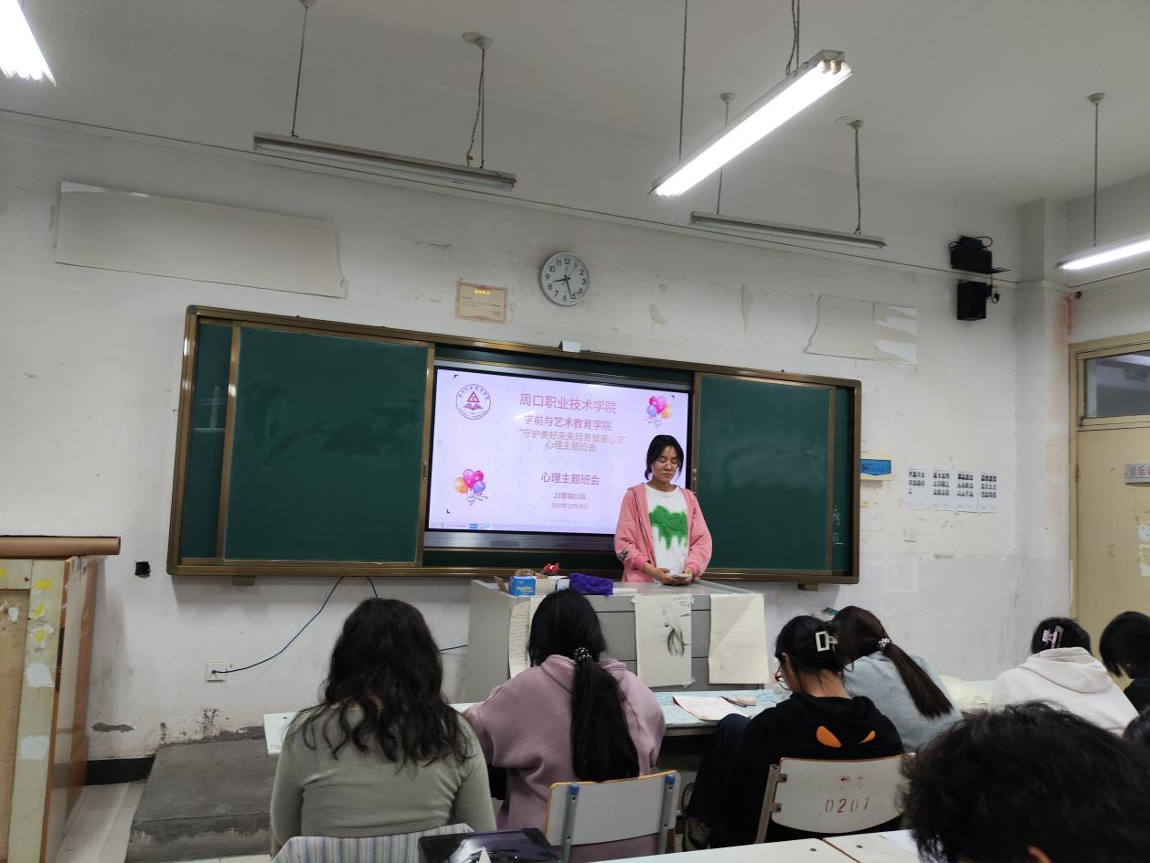 各班在教室开展心理健康教育主题班会。辅导员及团支书向同学们分享了大学生活中较常出现的人际交往、情绪管理、学习焦虑等问题,结合学生心理发展特点,向大家传授常见的解决自身压力的方法,并强调心理健康可以促进全面发展,为同学们以后的大学生活指明方向。最后,辅导员鼓励同学们要以积极的心态正确面对挫折、战胜挫折、迎接挑战,培养同学们认识自我、完善自我、接纳自我的情感态度。