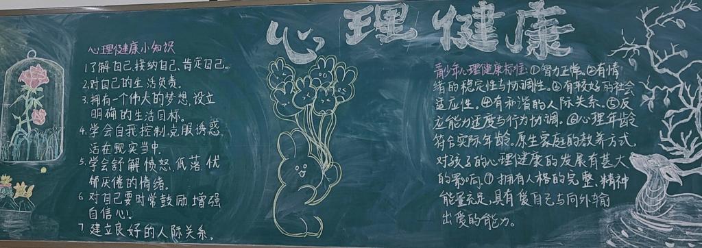 各班黑板报主题鲜明、内容充实、各显风采,精心设计的图案和内容详实的文字充分展现了贝博官网学子积极向上的精神风貌,营造了关注心理、重视心理的校园氛围,增强了大学生的自我心理保健意识,养成正确的心理健康观念,培养健全的心理素质。