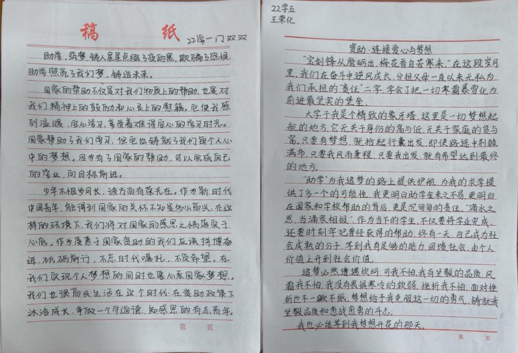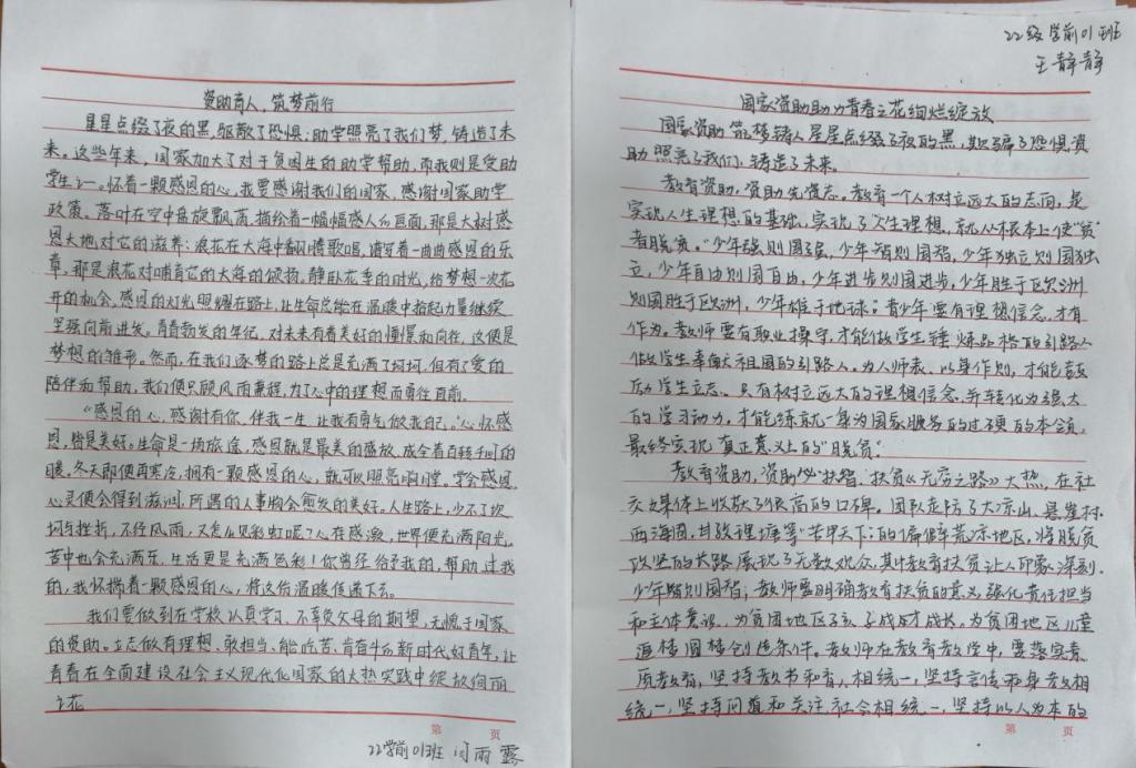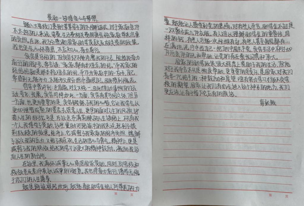 在此次征文活动中,学院学生积极响应,踊跃参与,征文作品充分阐明了国家资助政策为学生带来的巨大变化,展现出资助育人的重要意义,下面让我们一起来看看优秀征文吧!