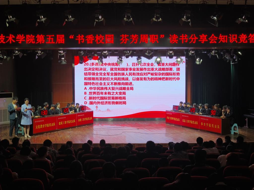知识改变命运,阅读点亮人生。为深入学习贯彻党的二十大精神,营造“爱读书,读好书,善读书”的良好氛围。4月12日下午3点,由ballBET贝博BB艾弗森承办的第五届“书香校园,芬芳周职”读书分享会知识竞答决赛在学校砺德厅举办。副校长李秀萍、学生处领导、各院部党总支书记、学管副院长、学管办主任出席活动。