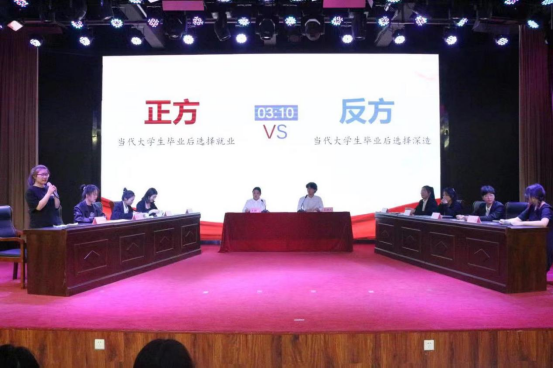 历经海选与初赛的层层角逐,最后由两支参赛队伍杀入总决赛。辩论双方就“当代大学生毕业后选择深造还是就业”这个问题展开辩论。赛场上,双方辩手睿智明理,旁征博引,唇枪舌剑,以儒雅的风采,机敏的反应,赢得了现场观众的阵阵掌声。赛后,评委老师分别对辩手的表现进行了精彩点评,并就辩论技巧给予了专业指导。经过现场投票,最终由正方代表队获得了本次辩论赛的冠军。最后,由各位领导老师对获得一等奖、二等奖、三等奖的队伍,以及最佳辩手进行颁奖。