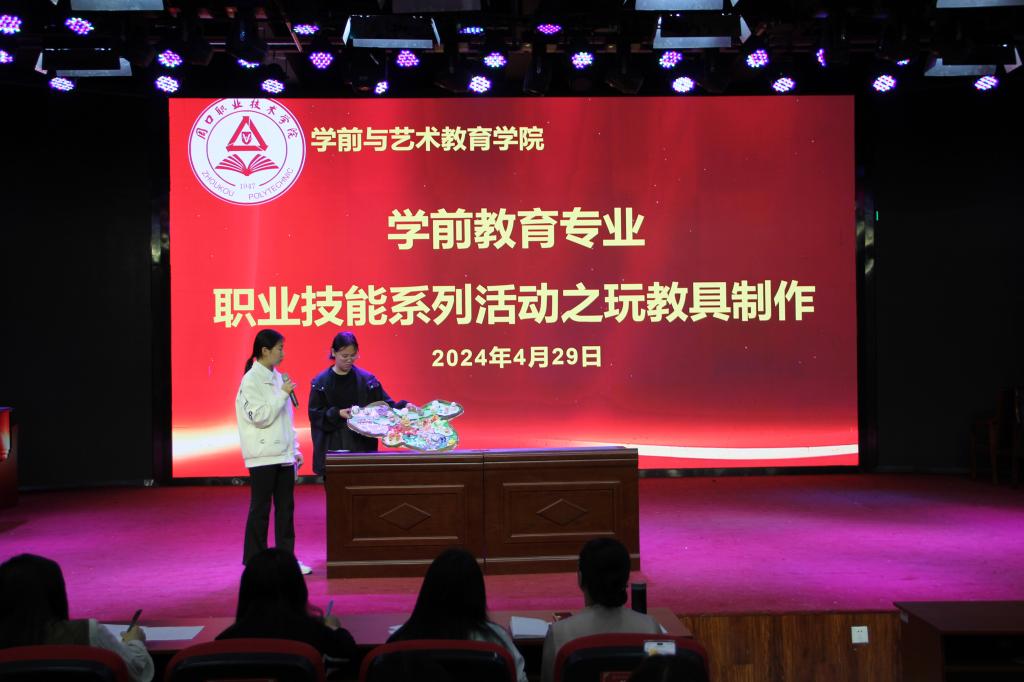 展示结束后,学前教育专业教师对同学们的参赛作品进行评价,向学生强调玩教具的基本准则——安全性、科学性、趣味性。并肯定了同学们过硬的专业本领,同时对同学们玩教具制作水平提出了更高的要求与建议。